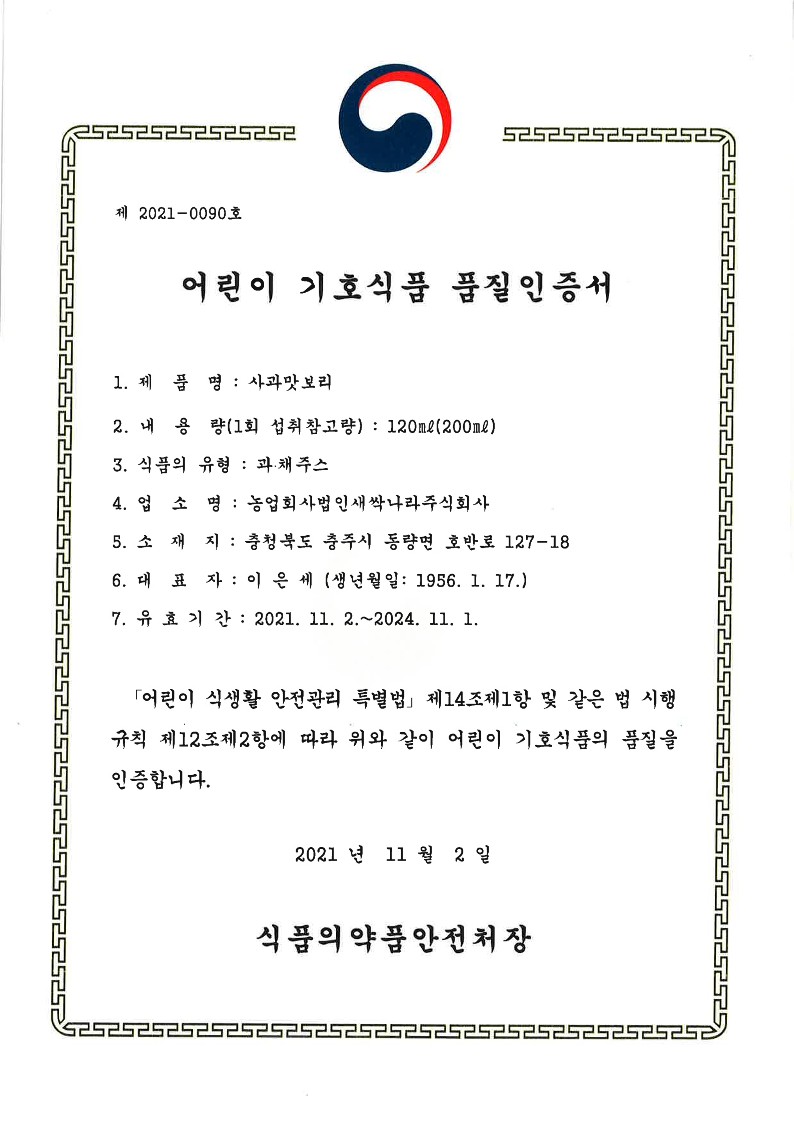 Children's Food Certification (Chungsa)